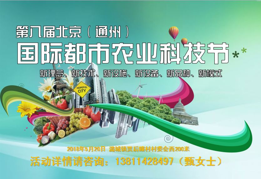 2018年5月19日-20日,將在北京國(guó)際都市農(nóng)業(yè)科技園舉辦“第八屆北京(通州)國(guó)際都市農(nóng)業(yè)科技節(jié)”,統(tǒng)籌國(guó)內(nèi)外農(nóng)業(yè)科技資源,通過(guò)“政、產(chǎn)、學(xué)、研、用”協(xié)同發(fā)展......