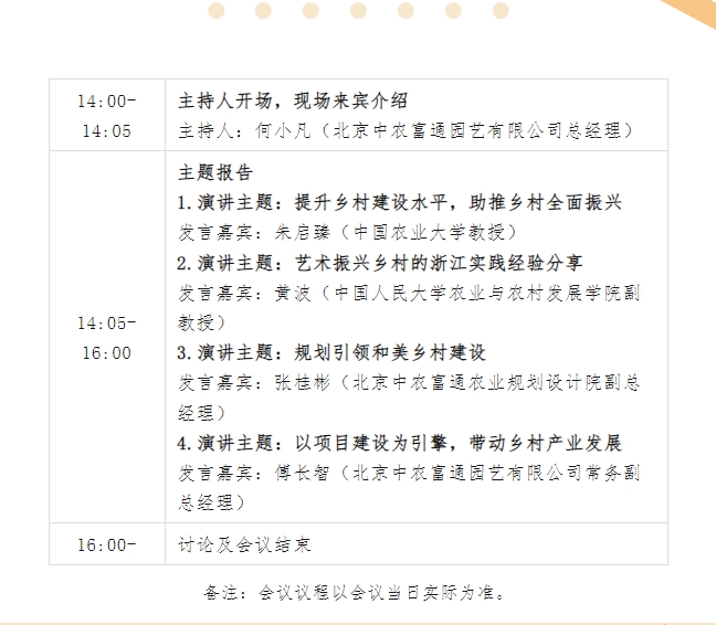 一、會(huì)議時(shí)間:2024年3月21日14:00-16:00二、會(huì)議地點(diǎn):北京市海淀區(qū)學(xué)清路金碼大廈B座17層三、會(huì)議形式:線上+線下四、主辦單位:北京中農(nóng)富通園藝......