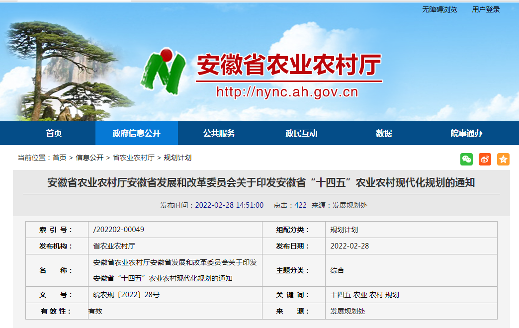 安徽省“十四五”農(nóng)業(yè)農(nóng)村現(xiàn)代化規(guī)劃安徽要強(qiáng)農(nóng)業(yè)必須強(qiáng),安徽要美農(nóng)村必須美,安徽要富農(nóng)民必須富。為加快推進(jìn)農(nóng)業(yè)農(nóng)村現(xiàn)代化,依據(jù)國家《“十四五”推進(jìn)農(nóng)業(yè)農(nóng)村現(xiàn)代化規(guī)......