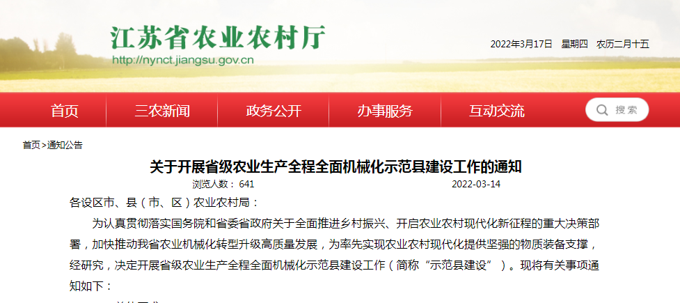 各設(shè)區(qū)市、縣(市、區(qū))農(nóng)業(yè)農(nóng)村局:為認(rèn)真貫徹落實(shí)國務(wù)院和省委省政府關(guān)于全面推進(jìn)鄉(xiāng)村振興、開啟農(nóng)業(yè)農(nóng)村現(xiàn)代化新征程的重大決策部署,加快推動我省農(nóng)業(yè)機(jī)械化轉(zhuǎn)型升級高......