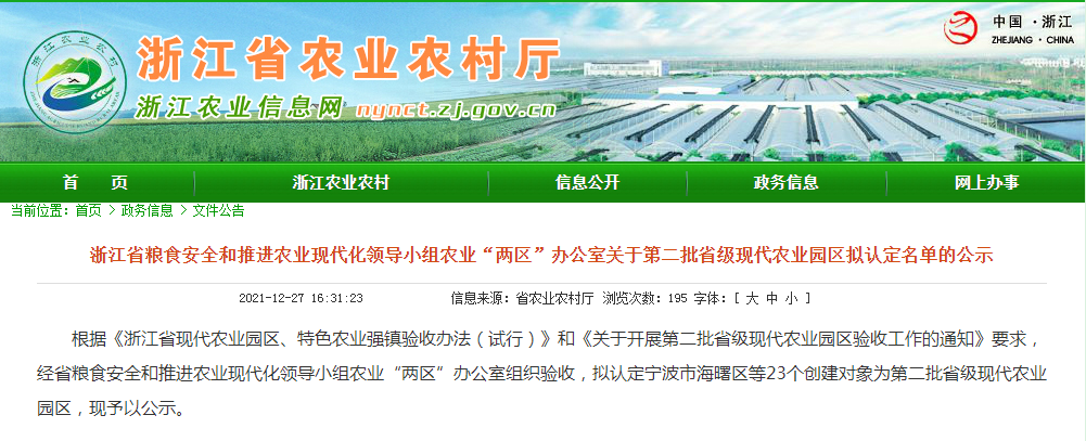 根據(jù)《浙江省現(xiàn)代農(nóng)業(yè)園區(qū)、特色農(nóng)業(yè)強(qiáng)鎮(zhèn)驗(yàn)收辦法(試行)》和《關(guān)于開展第二批省級現(xiàn)代農(nóng)業(yè)園區(qū)驗(yàn)收工作的通知》要求,經(jīng)省糧食安全和推進(jìn)農(nóng)業(yè)現(xiàn)代化領(lǐng)導(dǎo)小組農(nóng)業(yè)“兩區(qū)”......
