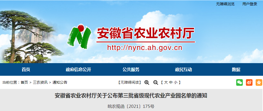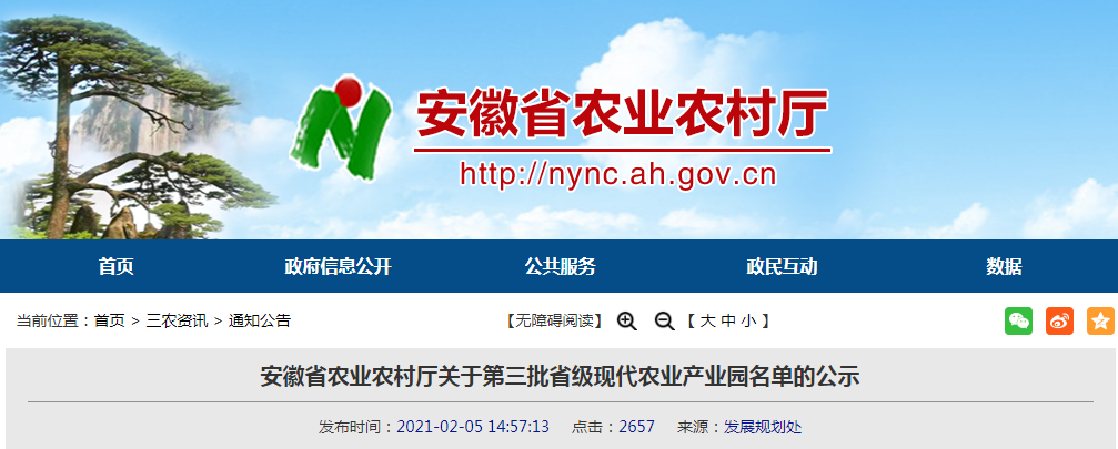 安徽省農(nóng)業(yè)農(nóng)村廳關(guān)于第三批省級(jí)現(xiàn)代農(nóng)業(yè)產(chǎn)業(yè)園名單的公示...