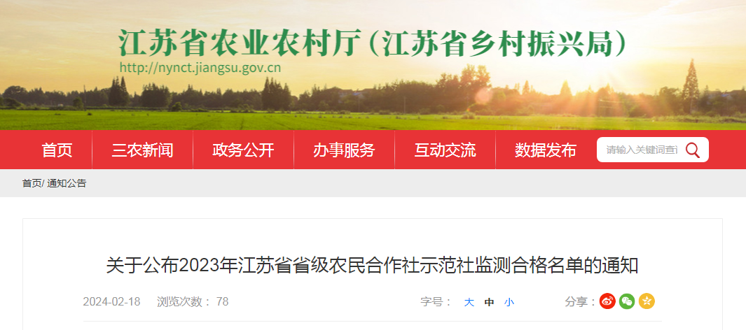 各設區(qū)市、縣(市、區(qū))農業(yè)農村局:按照《關于開展2023年國家農民合作社示范社及省級農民合作社示范社監(jiān)測工作的通知》(蘇農經〔2023〕8號)部署要求,根據(jù)《江......