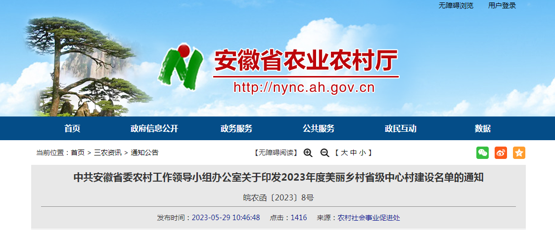 各市、縣(市、區(qū))黨委農(nóng)村工作領導小組:經(jīng)省委、省政府負責同志同意,批準肥東縣長臨河鎮(zhèn)茶山社區(qū)前山中心村等838個中心村列入2023年度美麗鄉(xiāng)村省級中心村建設名......