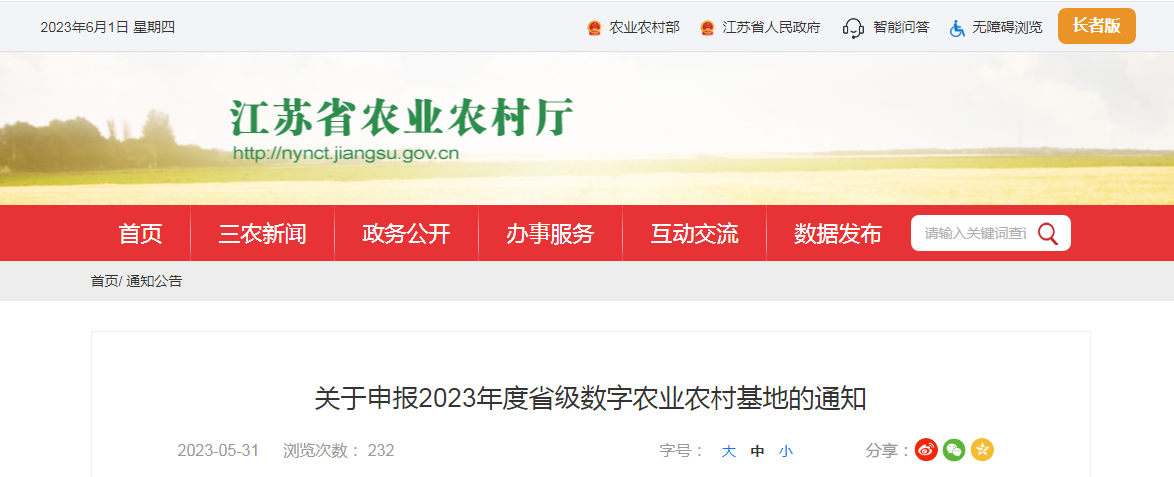 各設區(qū)市農(nóng)業(yè)農(nóng)村局,各有關單位:為貫徹落實2023年省委一號文件和《關于“十四五” 深入推進農(nóng)業(yè)數(shù)字化建設實施方案》(蘇政辦發(fā)〔2022〕27號)精神,持續(xù)推動......