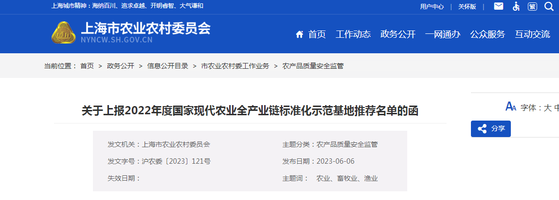 農(nóng)業(yè)農(nóng)村部農(nóng)產(chǎn)品質(zhì)量安全監(jiān)管司:根據(jù)《農(nóng)業(yè)農(nóng)村部關于開展國家現(xiàn)代農(nóng)業(yè)全產(chǎn)業(yè)鏈標準化示范基地創(chuàng)建的通知》(農(nóng)質(zhì)發(fā)〔2022〕4號)、《關于做好 2022 年國家現(xiàn)......