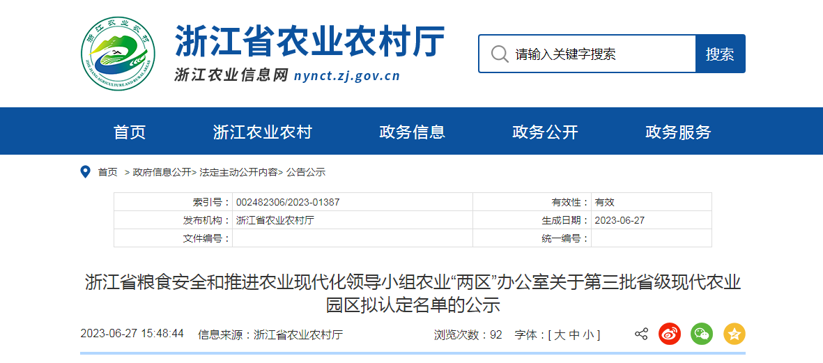 根據(jù)《浙江省農(nóng)業(yè)農(nóng)村廳關于印發(fā)農(nóng)產(chǎn)品加工業(yè)“百千”工程實施方案的通知》(浙農(nóng)產(chǎn)發(fā)〔2023〕3號)規(guī)定,省農(nóng)業(yè)農(nóng)村廳組織開展了2023年農(nóng)產(chǎn)品加工基地(園區(qū))申......