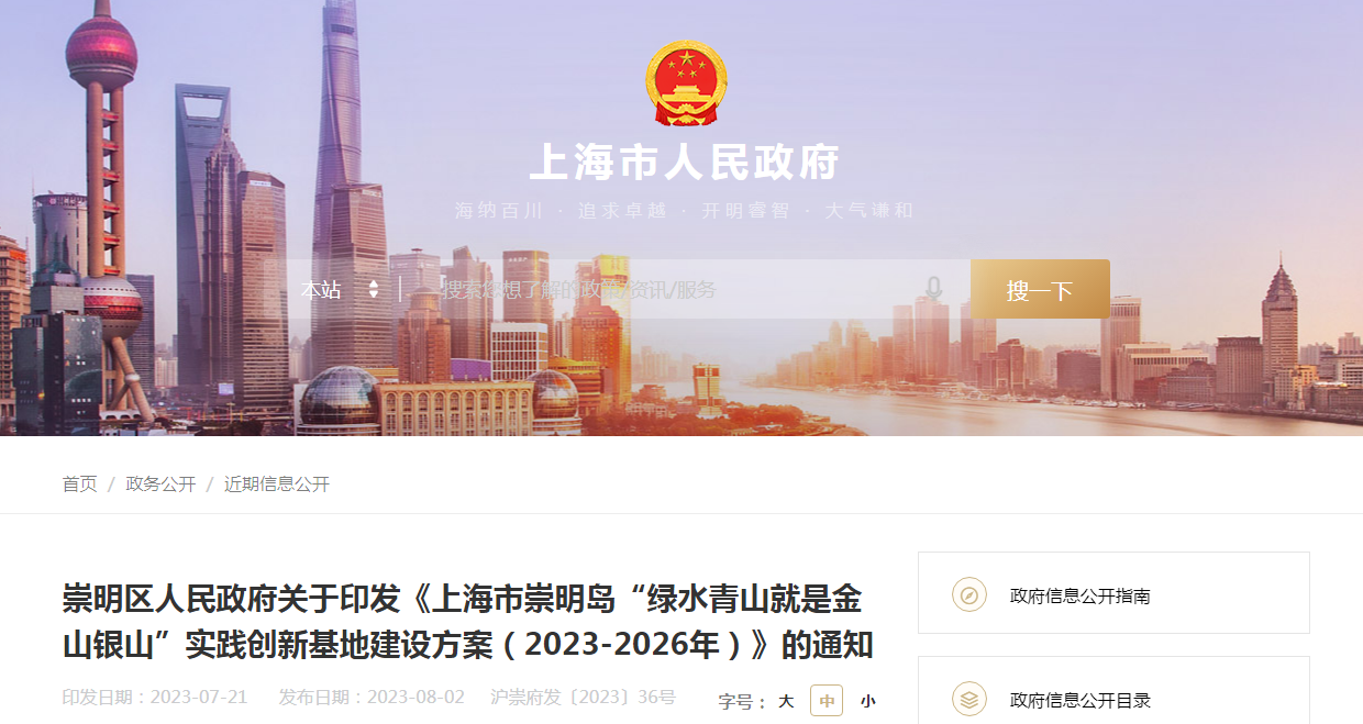 滬崇府發(fā)〔2023〕36號各鄉(xiāng)、鎮(zhèn)人民政府,區(qū)政府各委、辦、局,區(qū)各直屬單位,在崇市屬有關部門:現(xiàn)將《上海市崇明島“綠水青山就是金山銀山”實踐創(chuàng)新基地建設方案(......