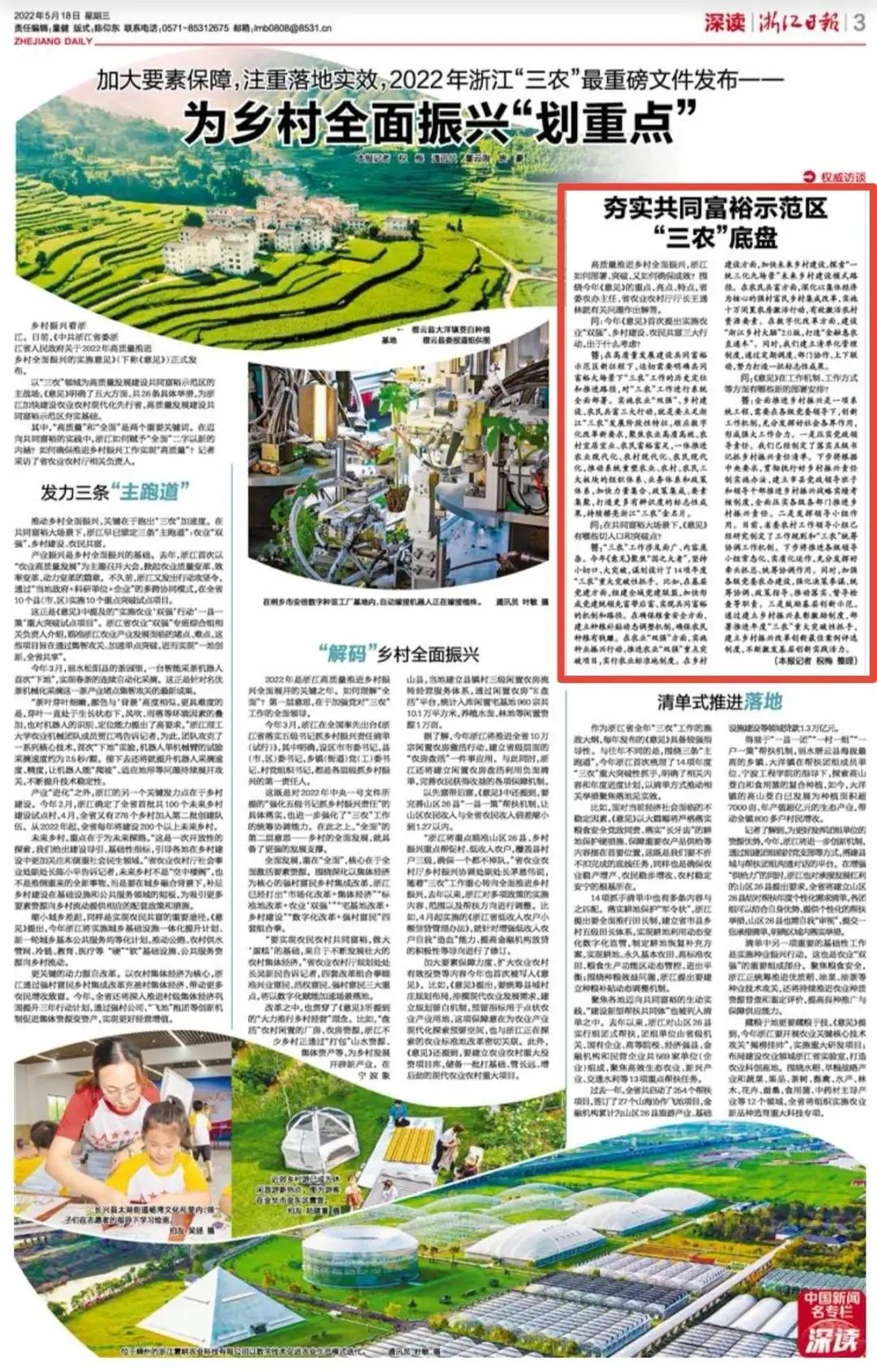 高質(zhì)量推進(jìn)鄉(xiāng)村全面振興,浙江如何部署、突破,又如何確保成效?圍繞今年《意見》的重點、亮點、特點,省委農(nóng)辦主任、省農(nóng)業(yè)農(nóng)村廳廳長王通林就有關(guān)問題作出解答。問:今年......