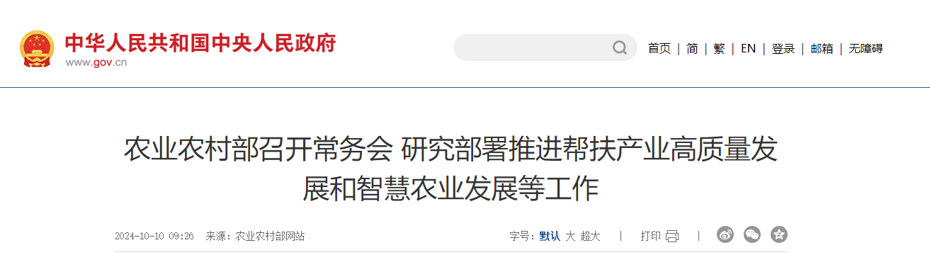 10月9日,農(nóng)業(yè)農(nóng)村部黨組書記、部長韓俊主持召開部常務(wù)會議,審議并原則通過《農(nóng)業(yè)農(nóng)村部關(guān)于落實“四個一批”要求扎實推進(jìn)幫扶產(chǎn)業(yè)高質(zhì)量發(fā)展的指導(dǎo)意見(送審稿)》《......