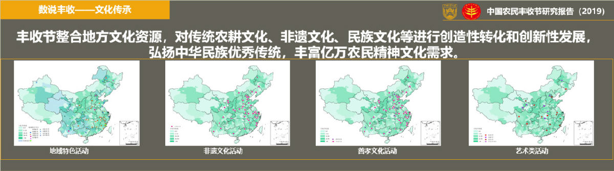 《報告》指出各地活動重心下沉到縣鄉(xiāng)村,以各地農(nóng)時農(nóng)事特點、優(yōu)秀傳統(tǒng)文化開展喜聞樂見的特色活動,為響應(yīng)組織指導(dǎo)委員會開展的“6個千萬”鄉(xiāng)村振興系列活動,各地組織了文藝表演和主題匯演類、農(nóng)耕文化和農(nóng)事體驗類、鄉(xiāng)村美食品鑒和評選類、傳統(tǒng)農(nóng)業(yè)節(jié)慶和產(chǎn)業(yè)節(jié)慶類、優(yōu)質(zhì)農(nóng)產(chǎn)品展銷和推介類、代表人物和特色產(chǎn)品評選類等系列活動。