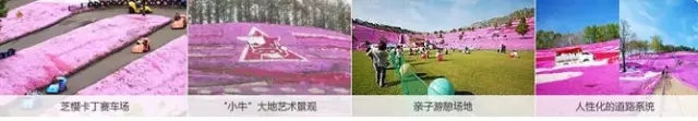 (2)多彩的芝櫻花田:通過不同花色的芝櫻種植,拼出獨特的“小牛”大地藝術(shù)景觀,形成景區(qū)著名地標之一。