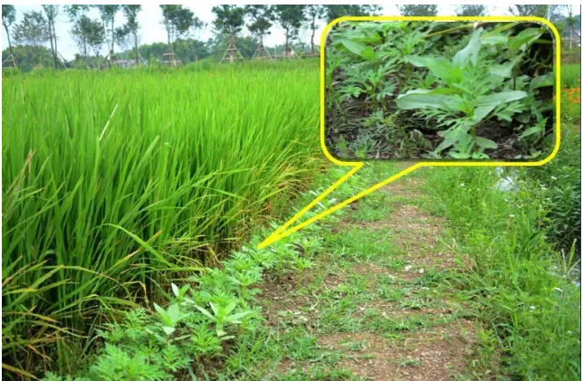 田埂上雜草叢生,并非無人打理,而是刻意種植的,是經(jīng)多年反復(fù)實驗篩選出來的功能性雜草,可引誘害蟲到草上產(chǎn)卵,同時該草對幼蟲具有較強的致死作用,可有效降低田間害蟲的種群數(shù)量和危害。