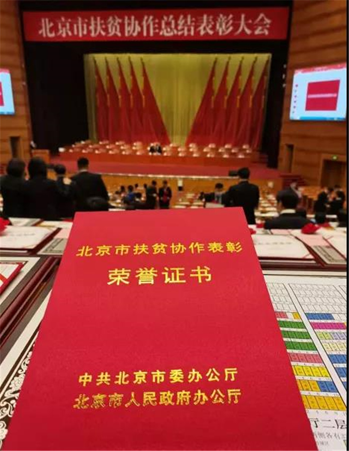 3月15日,中農(nóng)富通相關領導受邀出席參加了中共北京市委辦公廳、北京市人民政府辦公廳召開的北京市扶貧協(xié)作總結(jié)表彰大會,會上有關領導為成功入選的扶貧協(xié)作先進集體與先進個人頒發(fā)榮譽證書。被評為北京市扶貧協(xié)作先進集體,是黨和政府對中農(nóng)富通長期以來健康扶貧、教育扶貧、生態(tài)扶貧、科技扶貧、金融扶貧、扶智扶志、宣傳動員等工作的極大肯定,也激勵著中農(nóng)富通將以持之以恒、精益求精的態(tài)度繼續(xù)在防止返貧、脫貧攻堅與鄉(xiāng)村振興有效銜接工作中發(fā)光發(fā)熱。
