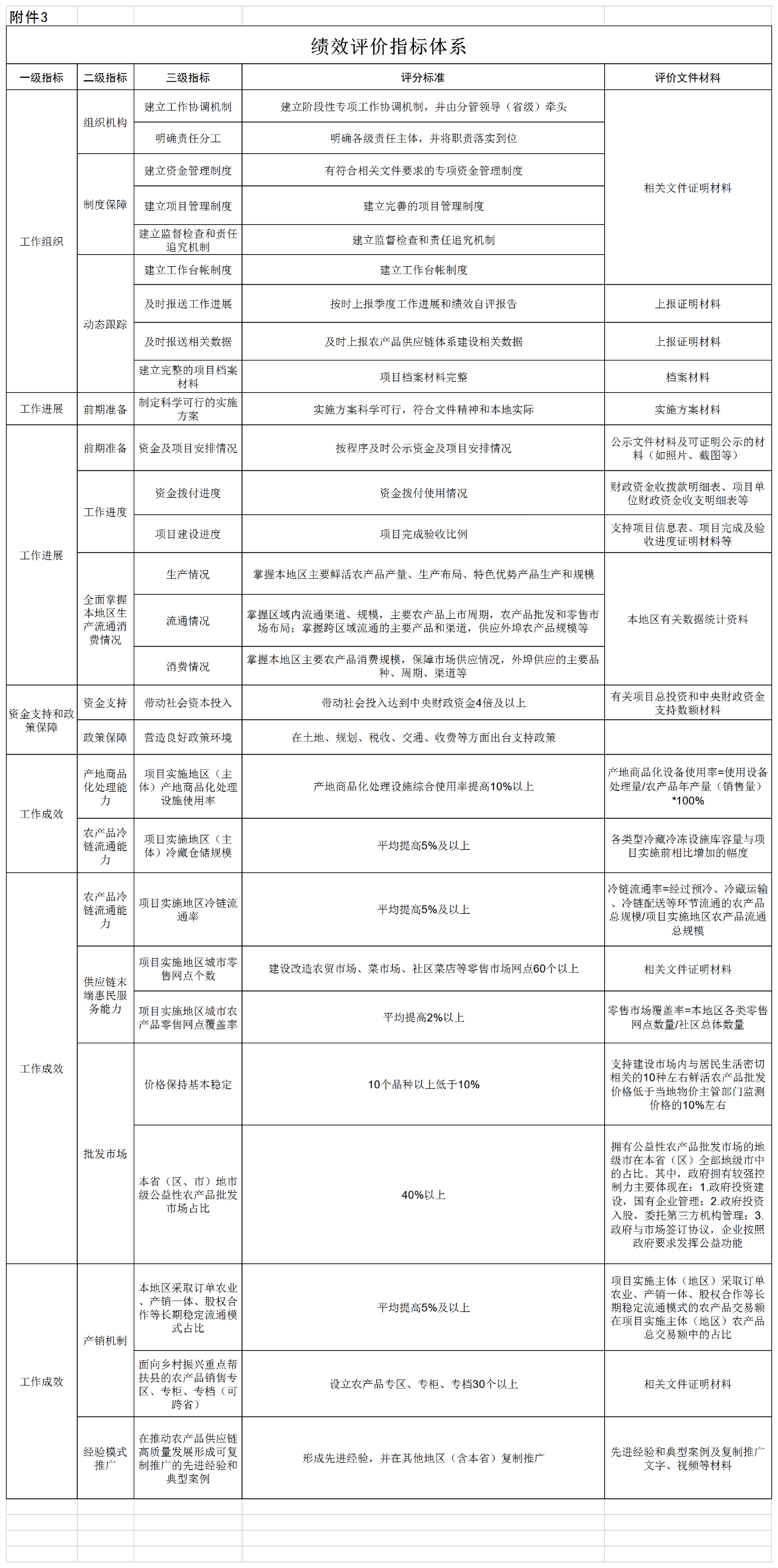通過2年時間,加快形成農(nóng)商聯(lián)系更為緊密、產(chǎn)銷銜接更為暢通的農(nóng)產(chǎn)品供應鏈體系,具體績效指標如下: