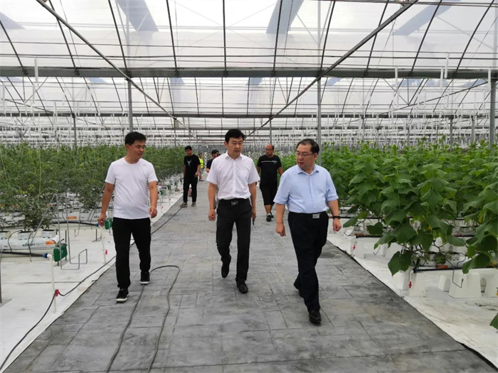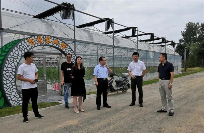 張?zhí)熘淌谝恍械桨素灾蕖澳吧匣ǘ伞笨疾煊芍修r(nóng)富通承建的“智慧農(nóng)業(yè)館”建設進度,并作出指導性建議。