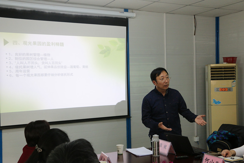 本次沙龍主題為“現(xiàn)代觀光果園的建設(shè)與運營”。現(xiàn)代觀光果園相異于早期果園,其將綠色果品生產(chǎn)和生態(tài)旅游相結(jié)合,并融入了景觀、生態(tài)概念,是日益風(fēng)靡的觀光農(nóng)業(yè)的重要分支之一?;顒友埖搅吮本┦修r(nóng)林科學(xué)院林業(yè)果樹研究所張銳研究員,張老師就“如何規(guī)劃建設(shè)好一個觀光果園”做了主題分享,精彩獨到的講解受到了參會人員的熱烈好評。