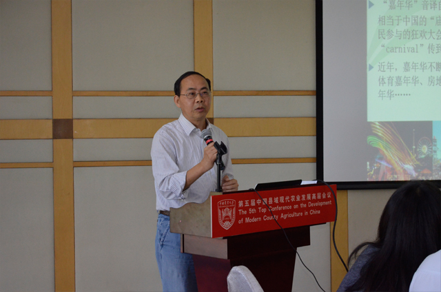 張?zhí)熘L介紹了“新常態(tài)下我國農業(yè)綜合體發(fā)展研究”,指出新常態(tài)下、“十三五”時期需把產業(yè)鏈、價值鏈等現代產業(yè)組織方式引入農業(yè),開發(fā)多功能價值,促進一二三產業(yè)融合互動;農業(yè)綜合體為一定地域范圍內,以農業(yè)為依托,集休閑、體驗、創(chuàng)意、研發(fā)、地產、會展、博覽等三種以上相關功能為一體,在農業(yè)生產及產業(yè)經營的同時,展現農業(yè)文化和農村生活,形成一個多功能、復合型、創(chuàng)新型的產業(yè)經濟綜合體。