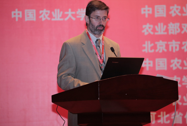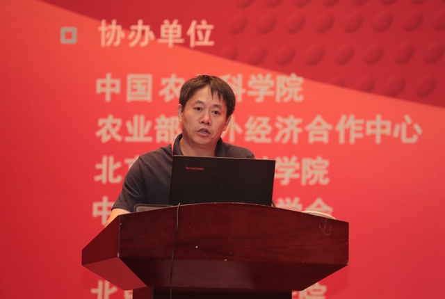 中國農(nóng)業(yè)大學(xué)國際學(xué)院教授孟繁錫主持國際農(nóng)業(yè)科技交流環(huán)節(jié)的召開。