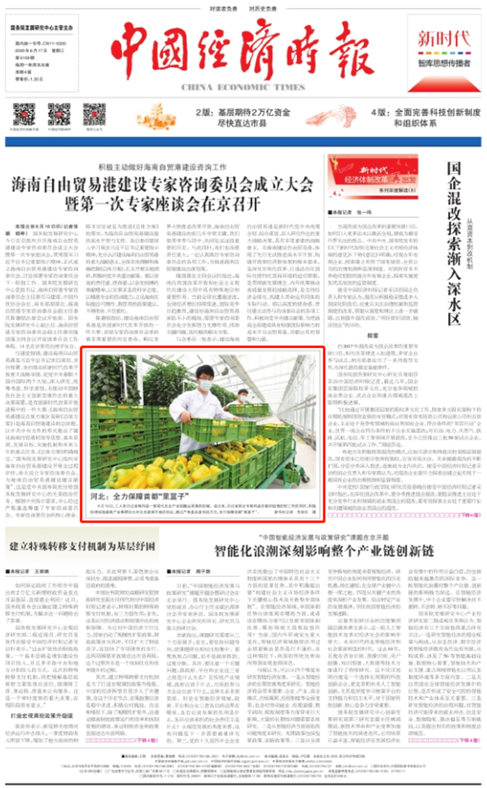 中國經(jīng)濟(jì)時(shí)報(bào)頭版刊發(fā)——河北:全力保障首都“菜籃子”