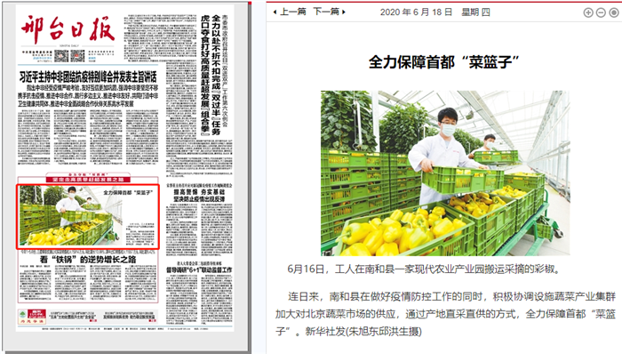 邢臺(tái)日?qǐng)?bào)頭版刊發(fā)——全力保障首都“菜籃子”