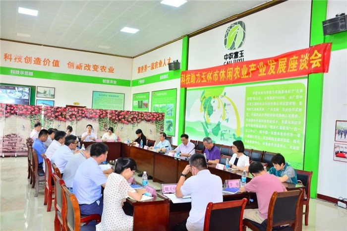 ▼2020年5月25日下午, 由廣西玉林市鄉(xiāng)村振興辦牽頭、中農(nóng)富通分支機構——廣西中農(nóng)富玉國際農(nóng)業(yè)科技有限公司(簡稱中農(nóng)富玉)承辦的玉林市脫貧攻堅與鄉(xiāng)村振興有效銜接工作座談會在廣西玉林“五彩田園”農(nóng)業(yè)嘉年華(中國現(xiàn)代農(nóng)業(yè)技術展示館)中農(nóng)富玉培訓基地舉辦。