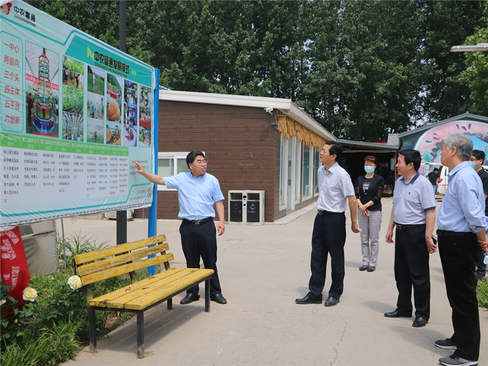 ▼5月28日,北京市通州區(qū)人大常委會副主任張紹武、金文嶺, 區(qū)科協(xié)黨組書記岳鳳山一行來北京國際都市農(nóng)業(yè)科技園考察調研。