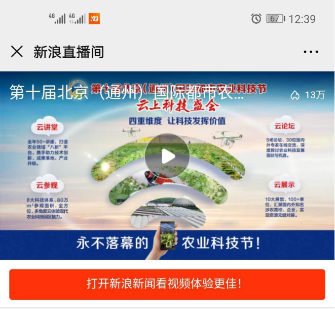 ▼5月16日上午9點(diǎn),第十屆北京(通州)國際都市農(nóng)業(yè)科技節(jié)(以下簡稱科技節(jié))在北京國際都市農(nóng)業(yè)科技園(以下簡稱“科技園”)盛大開幕!此次科技節(jié)首次采取現(xiàn)場與線上直播相結(jié)合的方式,大家打開手機(jī)、電腦,走進(jìn)直播間就能“云”游此次科技盛會。央視新聞、新華網(wǎng)、中國科技網(wǎng)、新浪網(wǎng)、北京時間、百度、抖音等媒體平臺對現(xiàn)場情況進(jìn)行了直播??萍紙@眾多的新奇創(chuàng)意栽培以及種植模式令人大開眼界。網(wǎng)友們通過這些新品種與研發(fā)技術(shù),充分地感受到了現(xiàn)代農(nóng)業(yè)的魅力。 據(jù)統(tǒng)計,當(dāng)天上午,線上共50萬余人次在線觀看了本次開幕式。開幕式結(jié)束后,園區(qū)5-11月可以持續(xù)預(yù)約參觀。
