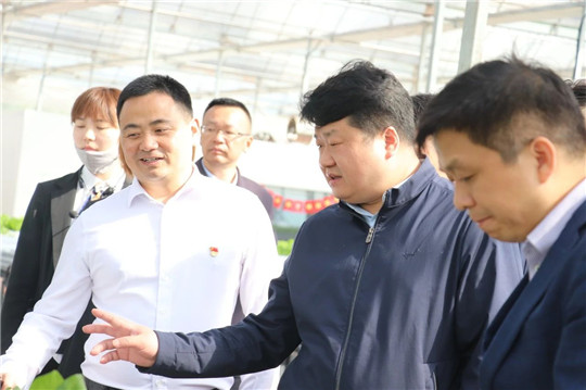 ▼4月15日下午,河北省農(nóng)業(yè)農(nóng)村廳廳長王國發(fā)等一行12人蒞臨中農(nóng)富通科技示范基地 — 中國南和設(shè)施農(nóng)業(yè)產(chǎn)業(yè)集群調(diào)研,南和縣縣委書記李勝敏陪同。