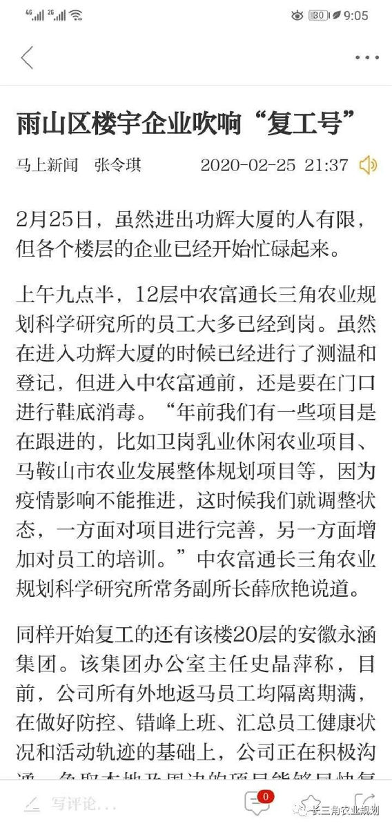 ▼自中農(nóng)富通長三角農(nóng)業(yè)規(guī)劃科學(xué)研究所(以下簡稱規(guī)劃所)2月10日正式復(fù)工以來,規(guī)劃所的防疫工作取得了顯著的成效,得到了當(dāng)?shù)卣母叨日J(rèn)可。針對規(guī)劃所的防疫情況,馬鞍山日報記者來到規(guī)劃所采訪了規(guī)劃所常務(wù)副所長薛欣艷,詳細(xì)了解了規(guī)劃所的防疫措施,以及在疫情中受到的影響和相關(guān)應(yīng)對措施。