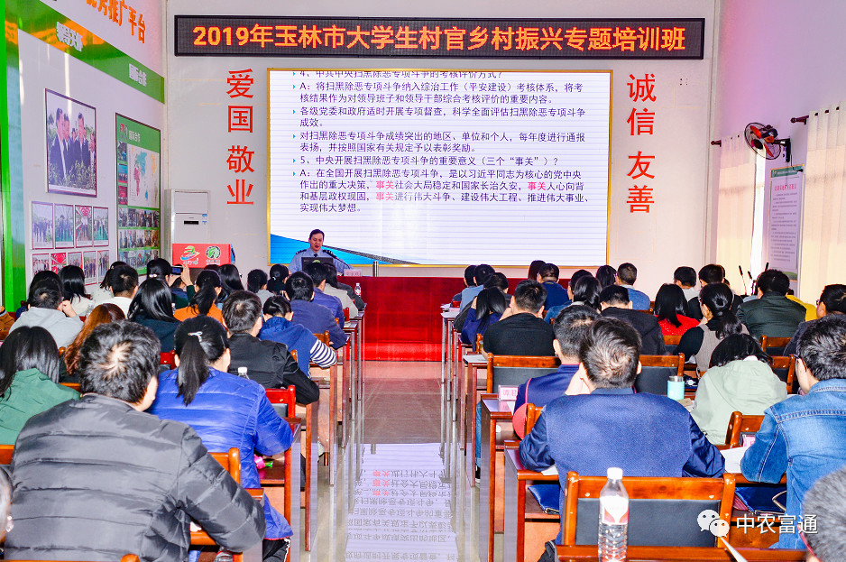 ▼11月26日,2019年玉林市大學(xué)生村官鄉(xiāng)村振興專題培訓(xùn)班在中農(nóng)富玉舉行開(kāi)班儀式,廣西自治區(qū)農(nóng)業(yè)農(nóng)村廳發(fā)展規(guī)劃處處長(zhǎng)羅應(yīng)平等為玉林市大學(xué)生村官培訓(xùn)班授課。