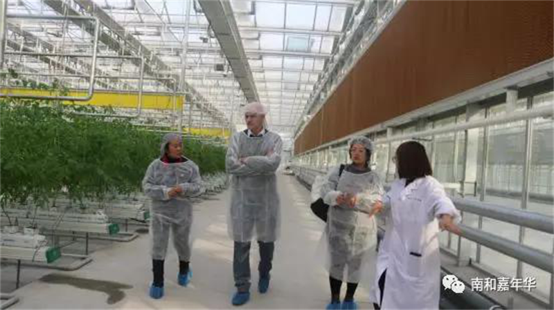 會(huì)后,Elliott教授前往河北省南和農(nóng)業(yè)嘉年華和現(xiàn)代設(shè)施農(nóng)業(yè)產(chǎn)業(yè)集群項(xiàng)目地進(jìn)行參觀考察(溫室規(guī)模16.3公頃)。教授在當(dāng)?shù)仄穱L了產(chǎn)業(yè)集群溫室出產(chǎn)的新鮮果蔬,并在嘉年華體驗(yàn)了多種特色活動(dòng),對(duì)嘉年華的模式和農(nóng)業(yè)科技栽培展示水平高度贊賞。