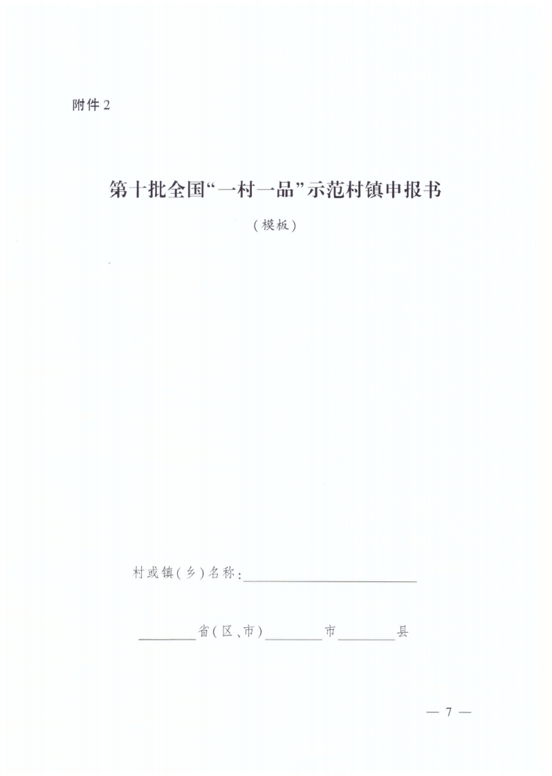 農(nóng)業(yè)農(nóng)村部辦公廳關(guān)于開展第十批全國"一村一品”示范村鎮(zhèn)認(rèn)定工作的通知