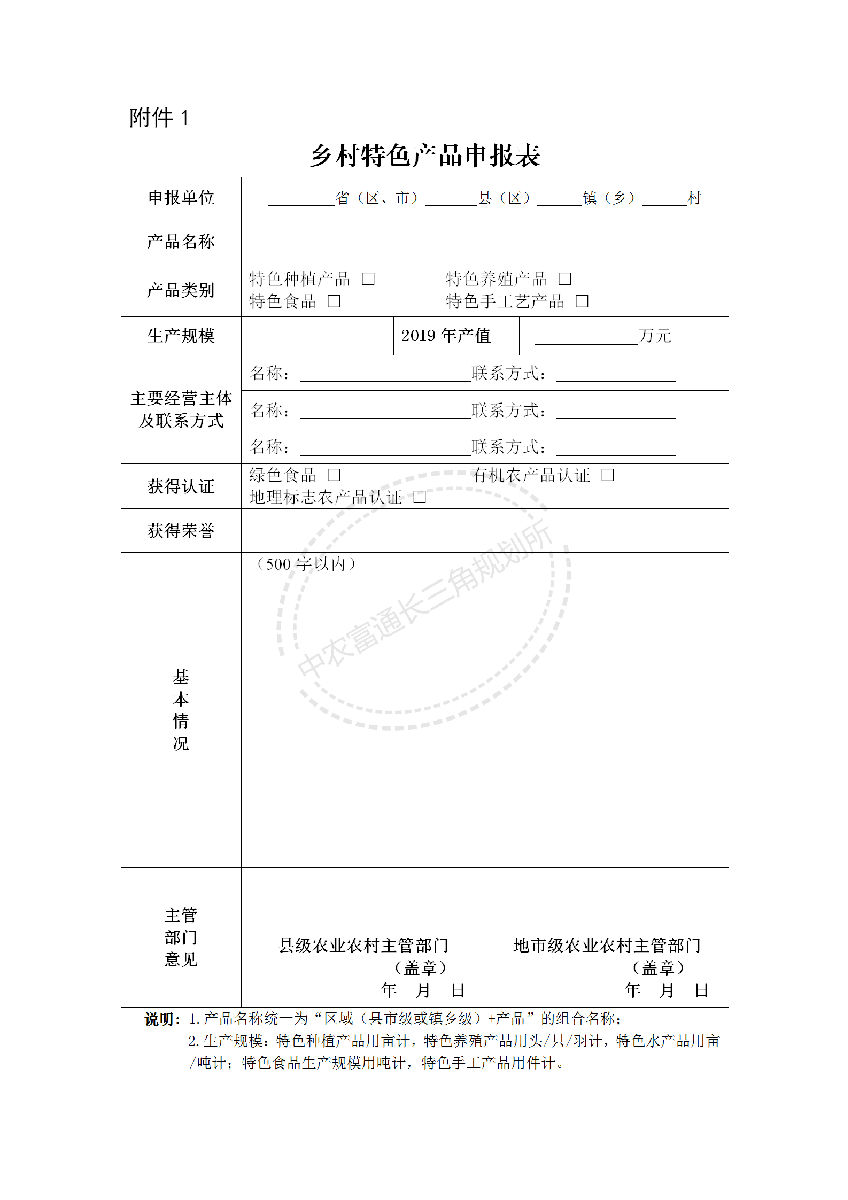 1.鄉(xiāng)村特色產(chǎn)品申報(bào)表