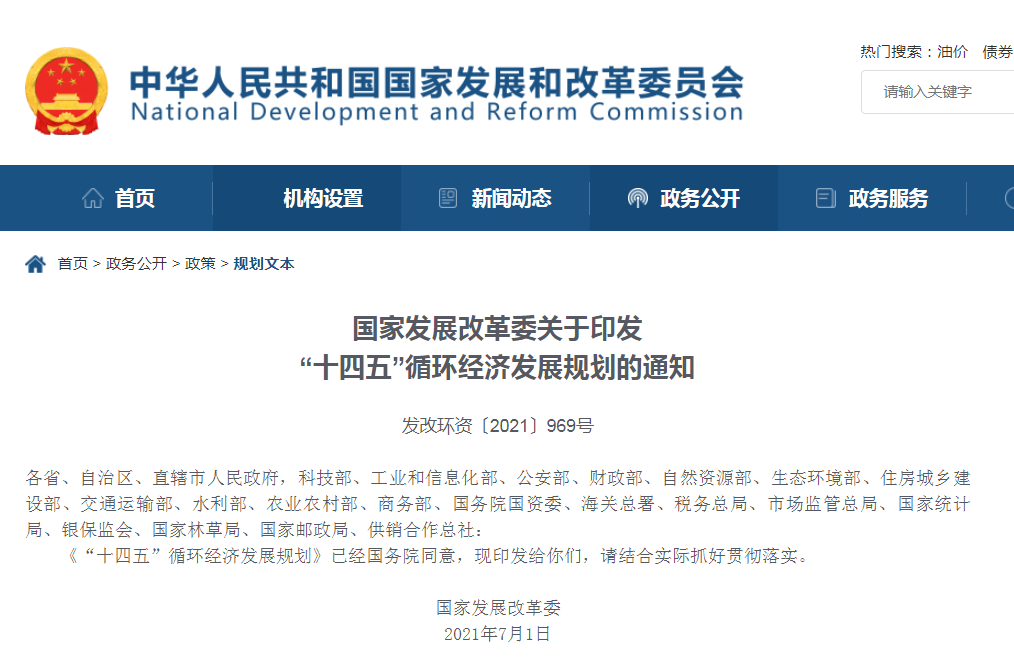 發(fā)展循環(huán)經(jīng)濟(jì)是我國經(jīng)濟(jì)社會發(fā)展的一項(xiàng)重大戰(zhàn)略?!笆奈濉睍r期我國進(jìn)入新發(fā)展階段,開啟全面建設(shè)社會主義現(xiàn)代化國家新征程。大力發(fā)展循環(huán)經(jīng)濟(jì),推進(jìn)資源節(jié)約集約利用,構(gòu)......