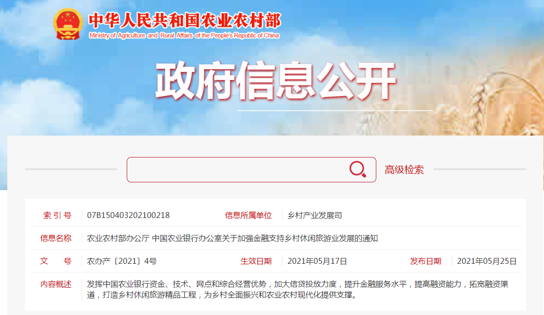 各省、自治區(qū)、直轄市農(nóng)業(yè)農(nóng)村(農(nóng)牧)廳(局、委),新疆生產(chǎn)建設(shè)兵團(tuán)農(nóng)業(yè)農(nóng)村局,中國(guó)農(nóng)業(yè)銀行各省、自治區(qū)、直轄市分行,新疆生產(chǎn)建設(shè)兵團(tuán)分行,各直屬分行:鄉(xiāng)村休閑旅......