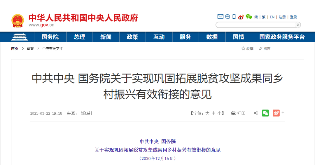 中共中央 國務(wù)院關(guān)于實現(xiàn)鞏固拓展脫貧攻堅成果同鄉(xiāng)村振興有效銜接的意見...