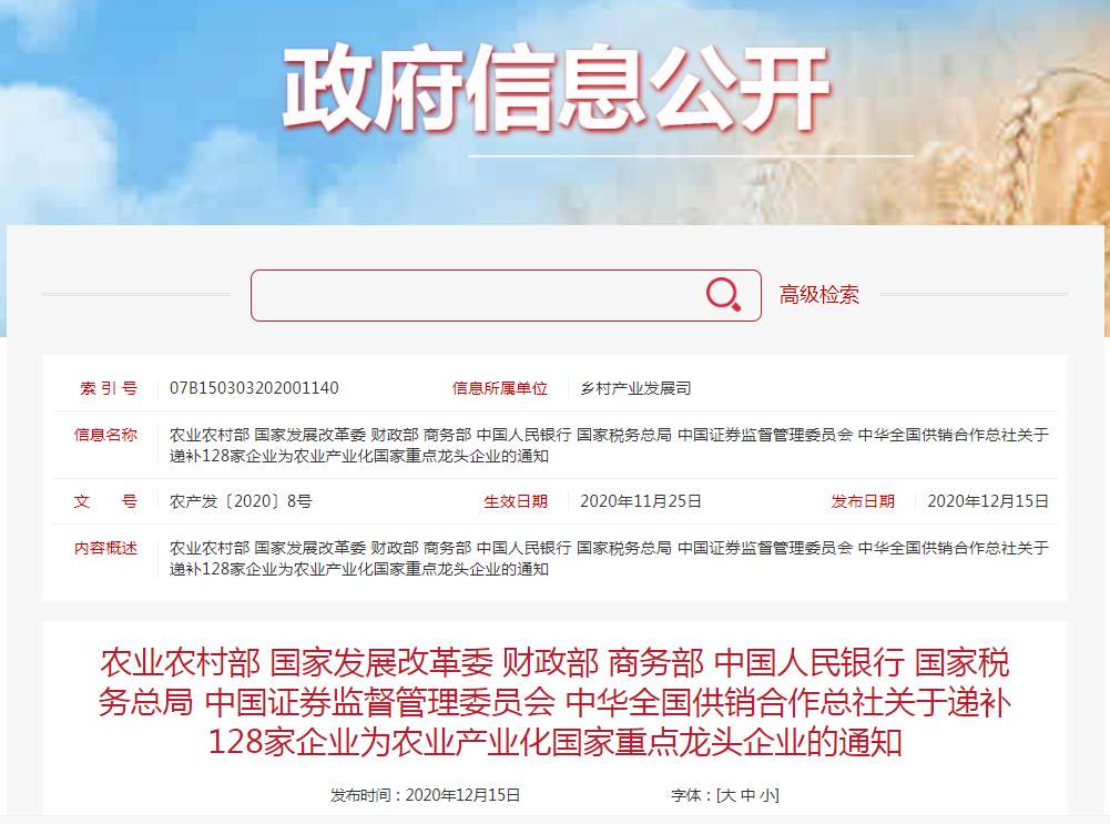 按照《農(nóng)業(yè)產(chǎn)業(yè)化國(guó)家重點(diǎn)龍頭企業(yè)認(rèn)定和運(yùn)行監(jiān)測(cè)管理辦法》規(guī)定和《農(nóng)業(yè)農(nóng)村部辦公廳關(guān)于開展農(nóng)業(yè)產(chǎn)業(yè)化國(guó)家重點(diǎn)龍頭企業(yè)監(jiān)測(cè)工作的通知》(農(nóng)辦產(chǎn)〔2020〕3號(hào))要求......