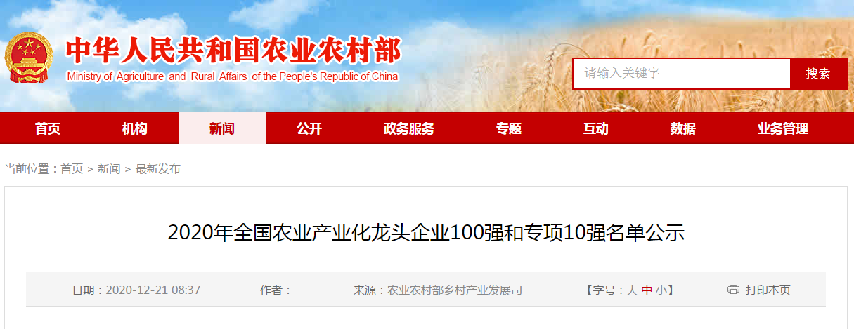 按照《中國(guó)農(nóng)業(yè)產(chǎn)業(yè)化龍頭企業(yè)協(xié)會(huì)關(guān)于開展全國(guó)農(nóng)業(yè)產(chǎn)業(yè)化龍頭企業(yè)100強(qiáng)推介活動(dòng)的通知》要求,經(jīng)企業(yè)自愿申報(bào)和專家審核,擬將中糧集團(tuán)有限公司等確定為2020年全國(guó)......