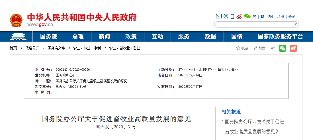 國(guó)務(wù)院辦公廳日前印發(fā)《關(guān)于促進(jìn)畜牧業(yè)高質(zhì)量發(fā)展的意見》。...