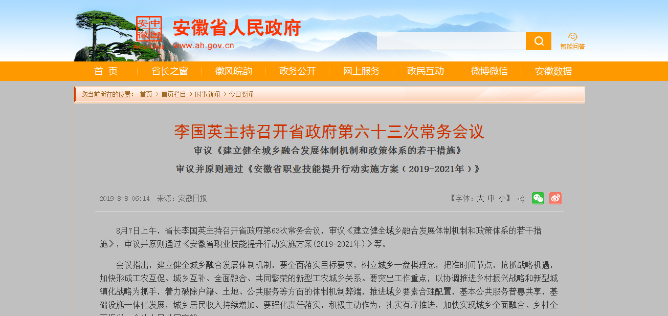 省長李國英主持召開省政府第63次常務(wù)會議,審議《建立健全城鄉(xiāng)融合發(fā)展體制機(jī)制和政策體系的若干措施》等。...