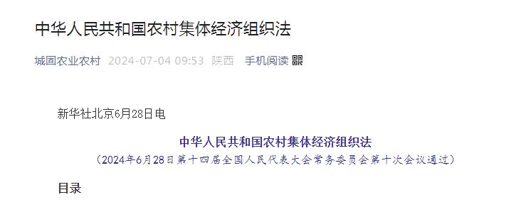 中華人民共和國農(nóng)村集體經(jīng)濟組織法(2024年6月28日第十四屆全國人民代表大會常務(wù)委員會第十次會議通過)目錄第一章 總則第二章 成員第三章 組織登記第四章 組織......