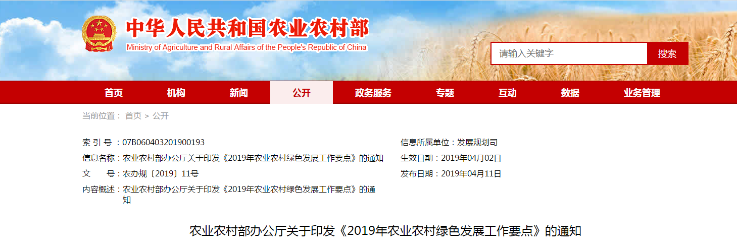 為貫徹落實中辦國辦《關(guān)于創(chuàng)新體制機制推進農(nóng)業(yè)綠色發(fā)展的意見》和2019年中央一號文件精神,按照中央農(nóng)村工作會議、全國農(nóng)業(yè)農(nóng)村廳局長會議部署要求,努力提升農(nóng)業(yè)農(nóng)村......