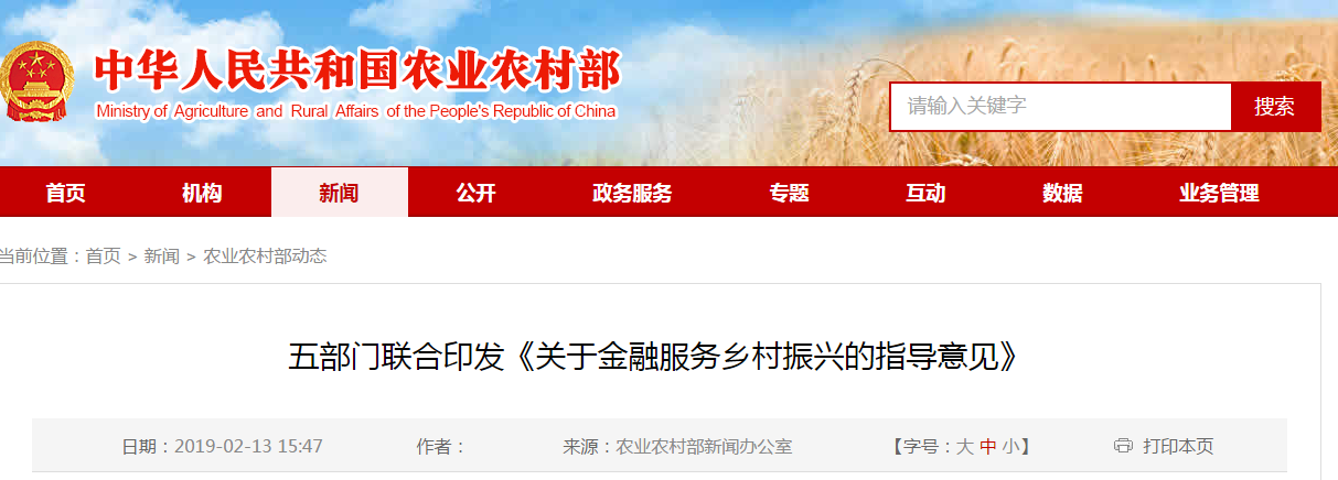 為切實提升金融服務(wù)鄉(xiāng)村振興效率和水平,中國人民銀行、銀保監(jiān)會、證監(jiān)會、財政部、農(nóng)業(yè)農(nóng)村部等五部門日前聯(lián)合印發(fā)《關(guān)于金融服務(wù)鄉(xiāng)村振興的指導(dǎo)意見》(以下簡稱《指導(dǎo)意......