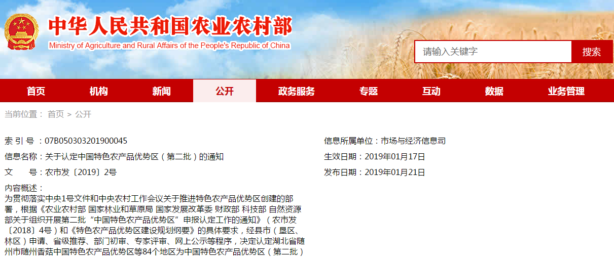 關(guān)于認定中國特色農(nóng)產(chǎn)品優(yōu)勢區(qū)(第二批)的通知各省、自治區(qū)、直轄市農(nóng)業(yè)農(nóng)村(農(nóng)牧)、畜牧獸醫(yī)、農(nóng)墾、漁業(yè)廳(局、委、辦),農(nóng)辦,林業(yè)草原、發(fā)展改革、財政、科技、自......