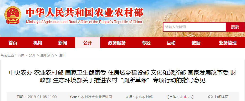 中央農(nóng)辦 農(nóng)業(yè)農(nóng)村部 國家衛(wèi)生健康委 住房城鄉(xiāng)建設(shè)部文化和旅游部 國家發(fā)展改革委 財政部 生態(tài)環(huán)境部關(guān)于推進農(nóng)村“廁所革命”專項行......