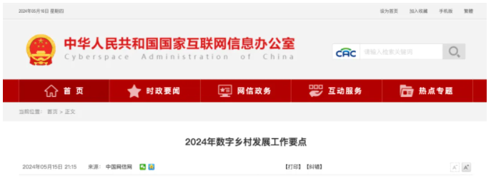 中央網(wǎng)信辦、農(nóng)業(yè)農(nóng)村部、國家發(fā)展改革委、工業(yè)和信息化部近日聯(lián)合印發(fā)《2024年數(shù)字鄉(xiāng)村發(fā)展工作要點(diǎn)》,要求以信息化驅(qū)動(dòng)引領(lǐng)農(nóng)業(yè)農(nóng)村現(xiàn)代化,促進(jìn)農(nóng)業(yè)高質(zhì)高效、鄉(xiāng)村......