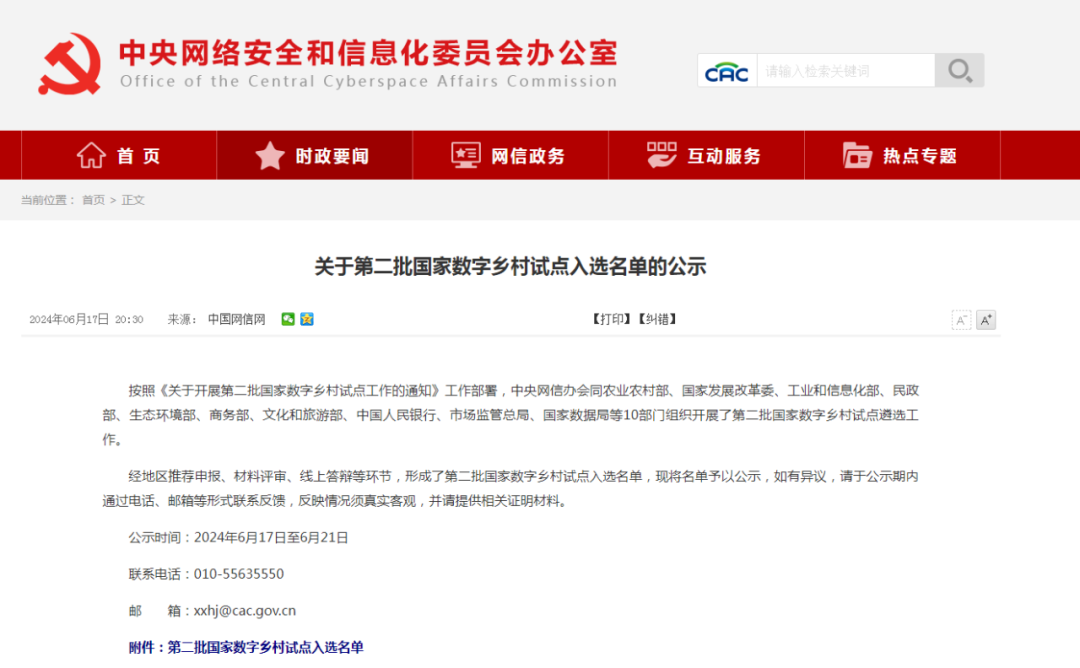 按照《關(guān)于開展第二批國家數(shù)字鄉(xiāng)村試點(diǎn)工作的通知》工作部署,中央網(wǎng)信辦會(huì)同農(nóng)業(yè)農(nóng)村部、國家發(fā)展改革委、工業(yè)和信息化部、民政部、生態(tài)環(huán)境部、商務(wù)部、文化和旅游部、中......