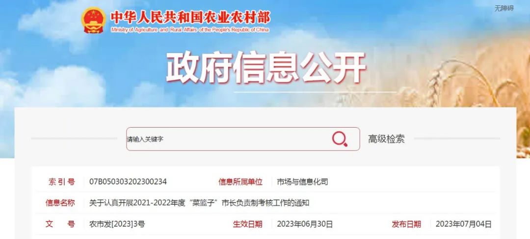 各直轄市、計(jì)劃單列市、省會(huì)城市人民政府: 為深入貫徹黨的二十大精神,認(rèn)真落實(shí)黨中央、國(guó)務(wù)院關(guān)于嚴(yán)格“菜籃子”市長(zhǎng)負(fù)責(zé)制考核的要求,根據(jù)《“菜籃子”市長(zhǎng)負(fù)責(zé)制考......