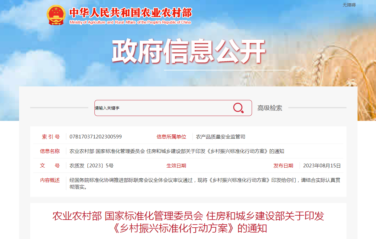 經(jīng)國(guó)務(wù)院標(biāo)準(zhǔn)化協(xié)調(diào)推進(jìn)部際聯(lián)席會(huì)議全體會(huì)議審議通過(guò),現(xiàn)將《鄉(xiāng)村振興標(biāo)準(zhǔn)化行動(dòng)方案》印發(fā)給你們,請(qǐng)結(jié)合實(shí)際認(rèn)真貫徹落實(shí)。農(nóng)業(yè)農(nóng)村部 國(guó)家標(biāo)準(zhǔn)化管理委員會(huì) 住房......